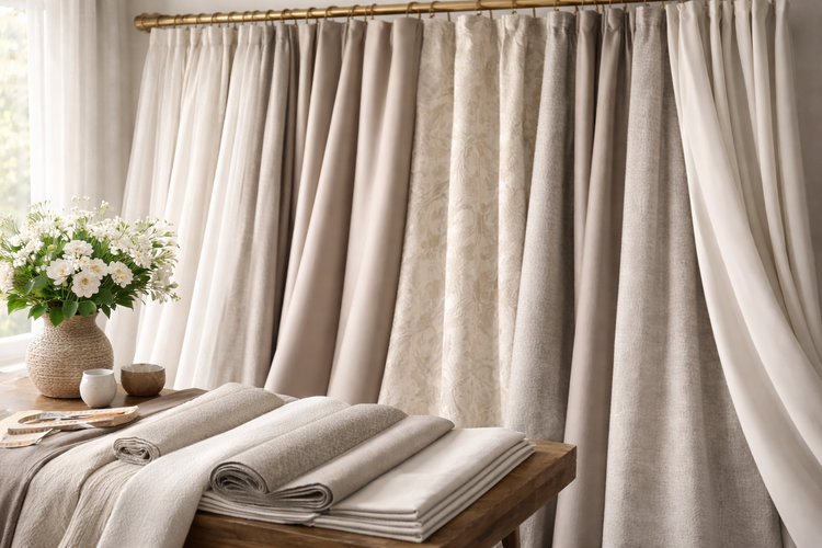 Tecidos para cortinas com diversos caimentos e texturas. Encontre opções leves, decorativas e funcionais.