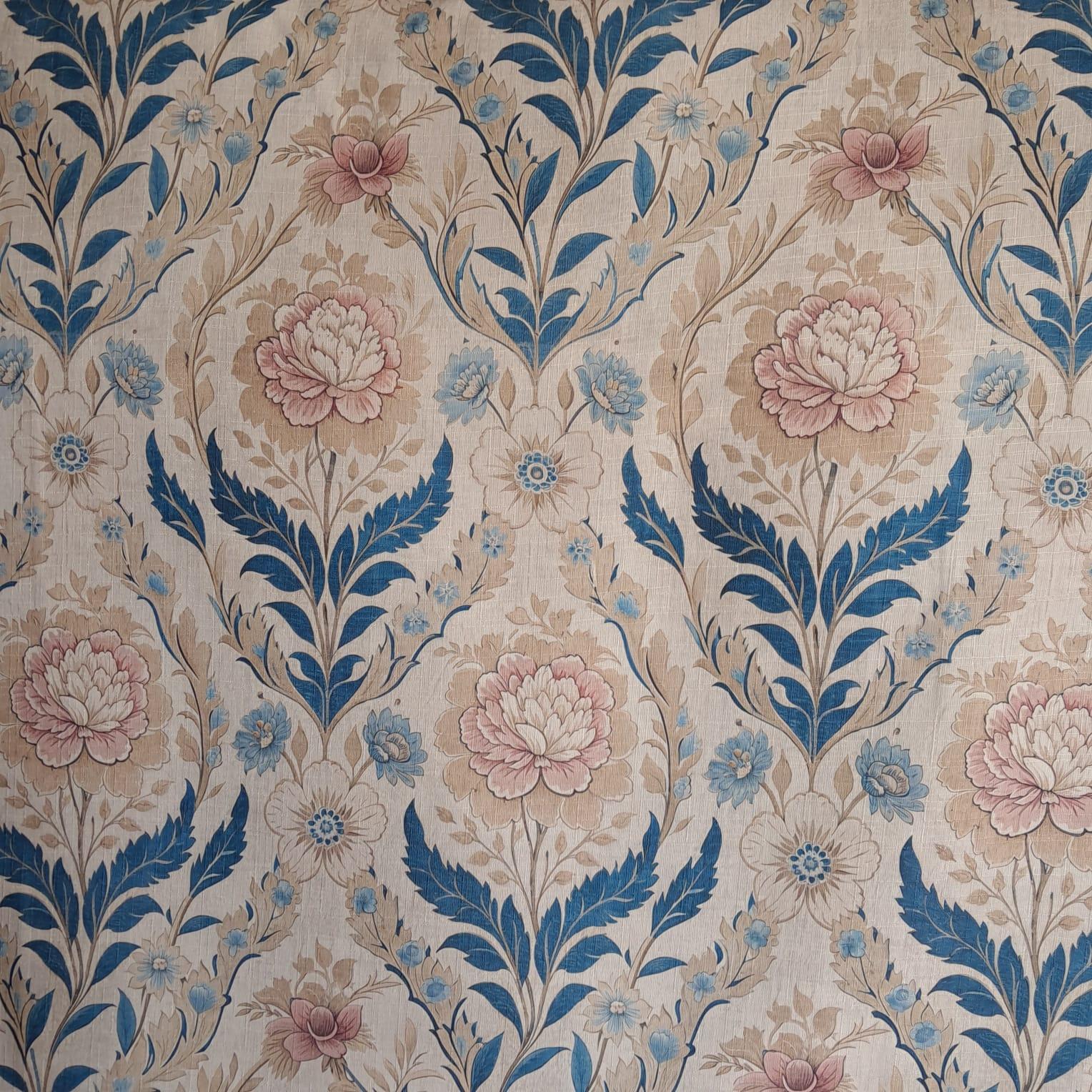 Tecido Para Sofá Linho Sintético Floral Bege com Rosa