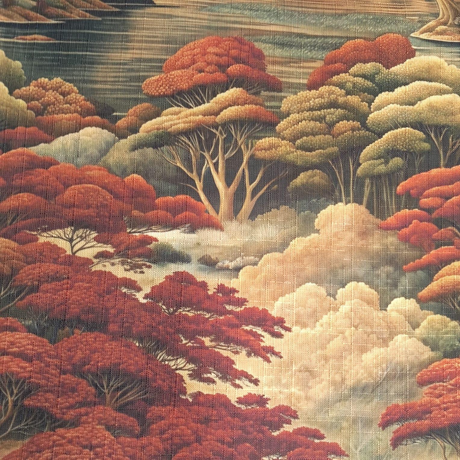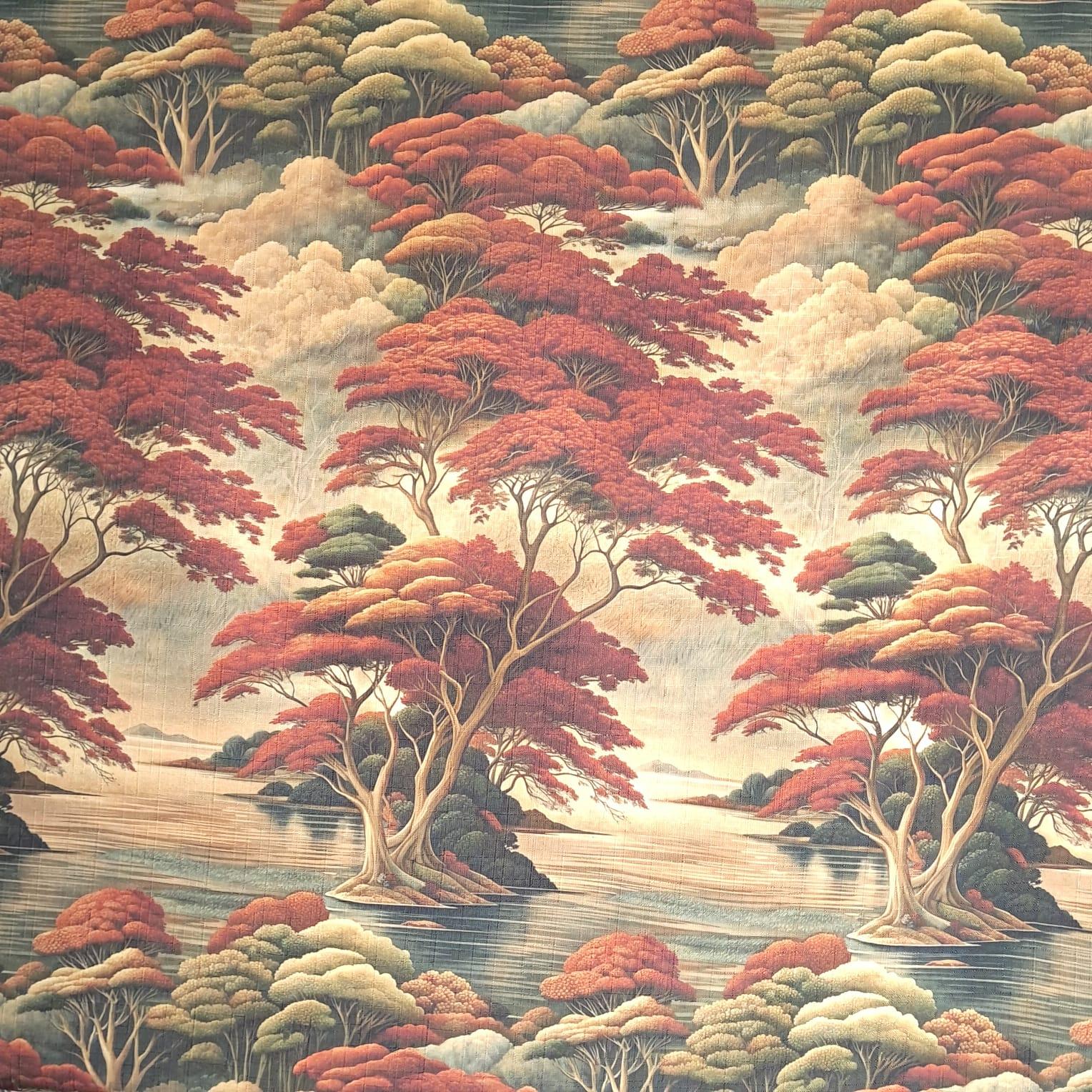 Tecido Para Sofá Linho Sintético Floresta Terracota